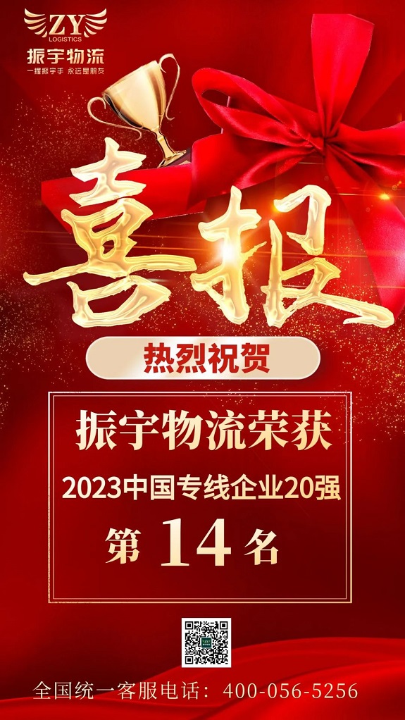 熱烈祝賀(hè)振宇物流榮獲2023中國(guó)專線企業20強第14名