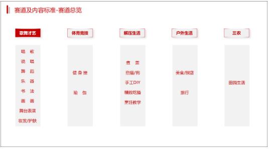 根據京東推出的主播招募政策,面向歌舞才藝、體育競技、解壓生活、戶外生活、三農五個大賽道下的17個細分賽道招募内容型主播。從政策細則來看 ,京東對每個細分賽道都做瞭(le)具體的“内容标準”要求,包括直播場(chǎng)景、音畫質量、主播狀态、直播内容等等。