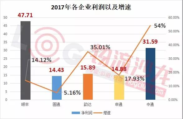 第三、淨(jìng)利潤:順豐(fēng)依舊領先,中通增幅最快